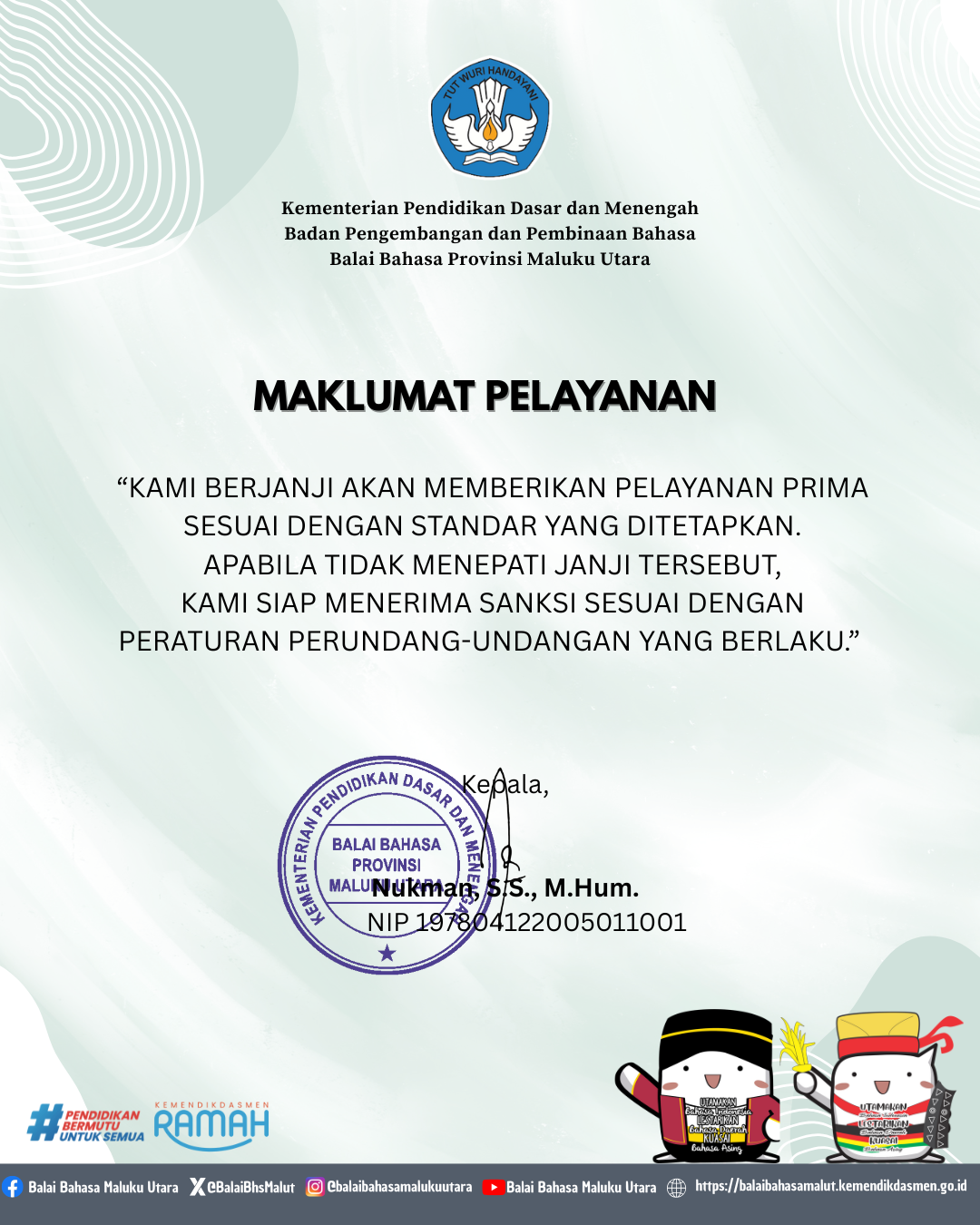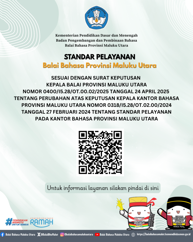 Balai Bahasa Provinsi Maluku Utara menggelar Bimbingan Teknis Pengajar Utama Bahasa Daerah di Kabupaten Halmahera Selatan pada 23—26 Juni 2025 di Aula Dinas Pendidikan Kabupaten Halmahera Selatan. Kegiatan dibuka pada Senin, 23 Juni 2025 oleh kepala Dinas Pendidikan Kabupaten Halmahera Selatan, Siti Khotijah, M.Ag. Dalam sambutannya, beliau menyampaikan salam dari Bupati Halmahera Selatan beserta istri, yang sedianya akan hadir membuka kegiatan, namun di tengah kondisi cuaca dan bencana yang melanda beberapa wilayah di Halmahera Selatan, Bupati beserta rombongan berhalangan hadir, dikarenakan harus meninjau lokasi banjir di beberapa titik di Labuha. Kepala Dinas Pendidikan menyampaikan dukungan pemerintah daerah terhadap program Revitalisasi Bahasa Daerah.